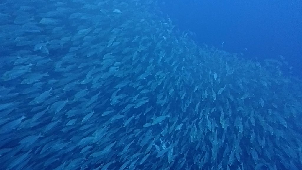今日はリピーター様とご新規の方とトライアングルへ行ってきました。 タマンの最盛期はいつまで続くのかなあっと皆んなで話してましたが、 1本目はタマンは小玉。 2本目はNOタマン 3本目に山のような群れを見ることができました。 他にもヒレナガカンパチ... -