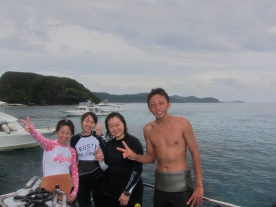 暗雲が広がってますが、昨日に引き続きSさん親子と慶良間へ。
