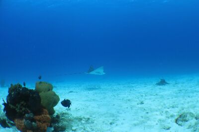 写真は遠いですがかなり大きなマダラトビエイでした。