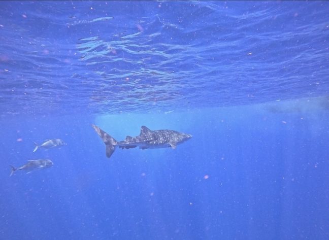 昼にチビのジンベイが水面に!