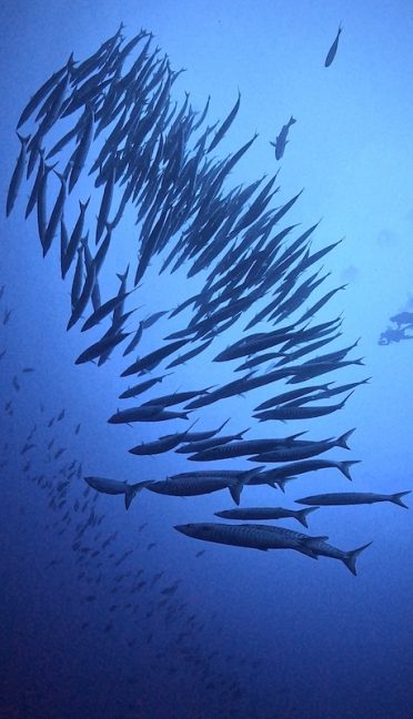 潮が少しあるからか、魚少なめ、バラクーダも水底に
