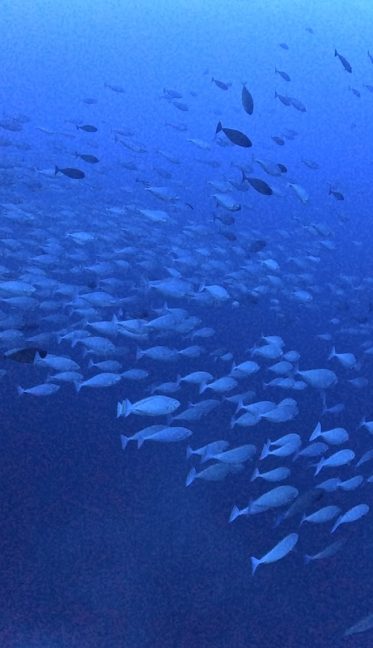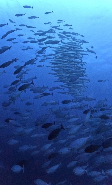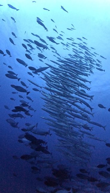 ハギとバラクーダが中層でぎゅぎゅっと密集して