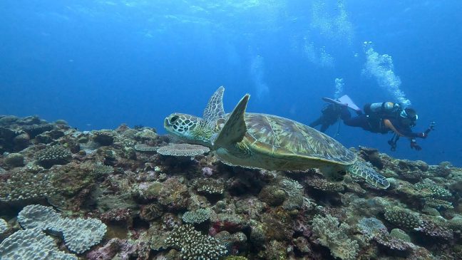 のんびり綺麗なアオウミガメと食いしん坊なタイマイでした