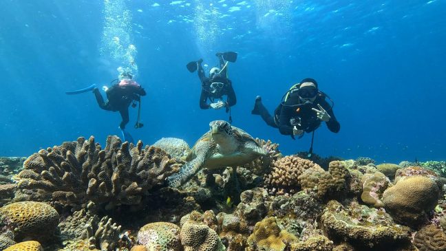 でもサンゴもスズメダイも砂地もとってもきれいでした✨