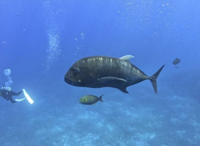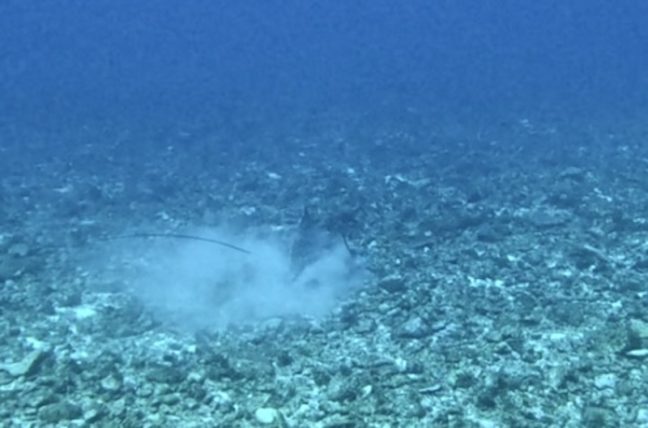 ウチザンでがっつり捕食中のマダラトビエイがいました👏