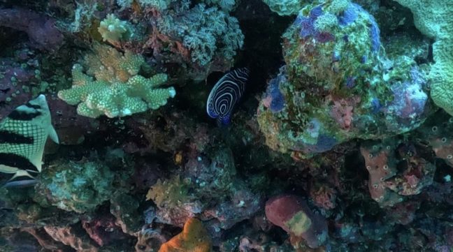 最後のウチザン礁ではタテジマキンチャクダイの幼魚に遭遇!