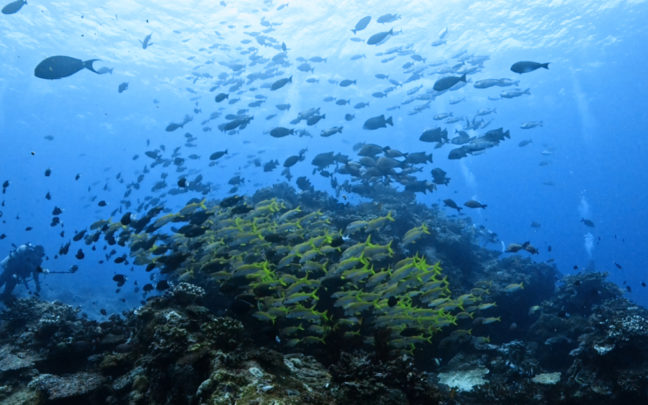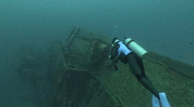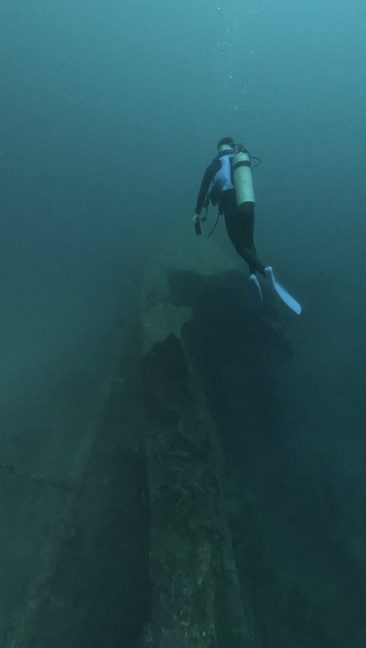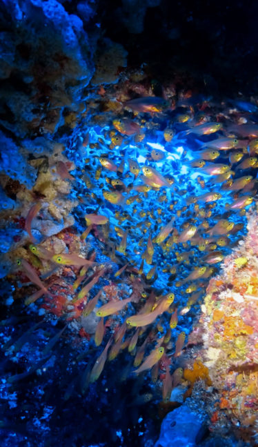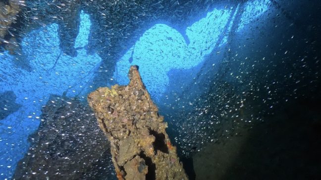 船の中にはスカシテンジクダイの群れが幻想的な空間を作り出していました。
