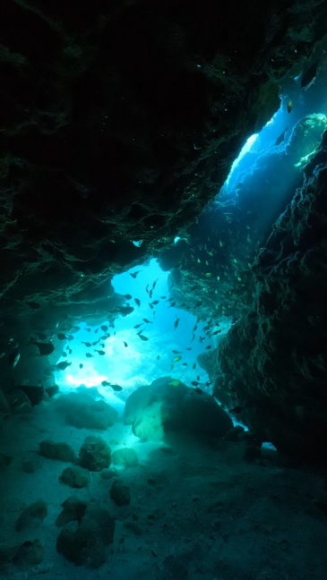 洞窟に入りダイビングならではの景色を楽しみました。