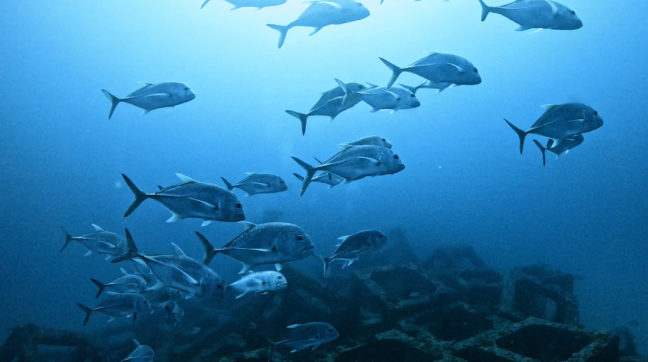 ロウニンアジがこれだけいると顔面の圧だけで2気圧くらいありそうですね