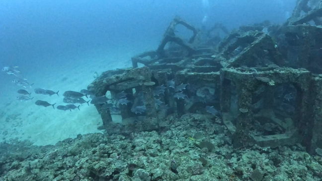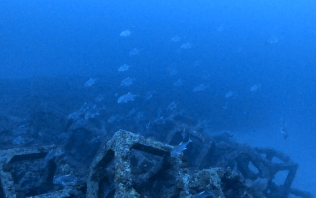漁礁の間を縫って泳ぐ姿が荘厳です