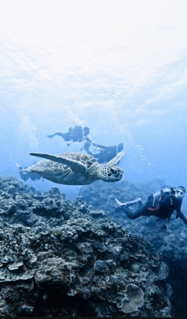 一本目の早々、アオウミガメに遭遇しました