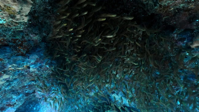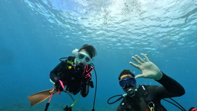 元気いっぱいのサンゴ礁とすごい数のデバスズメダイに心奪われながら潜ってきました!