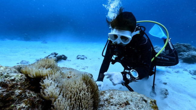 講習の合間にカクレクマノミに挨拶