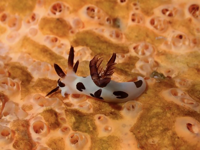 パンダツノウミウシは個体数が増えすぎてていたるところで見ることができます