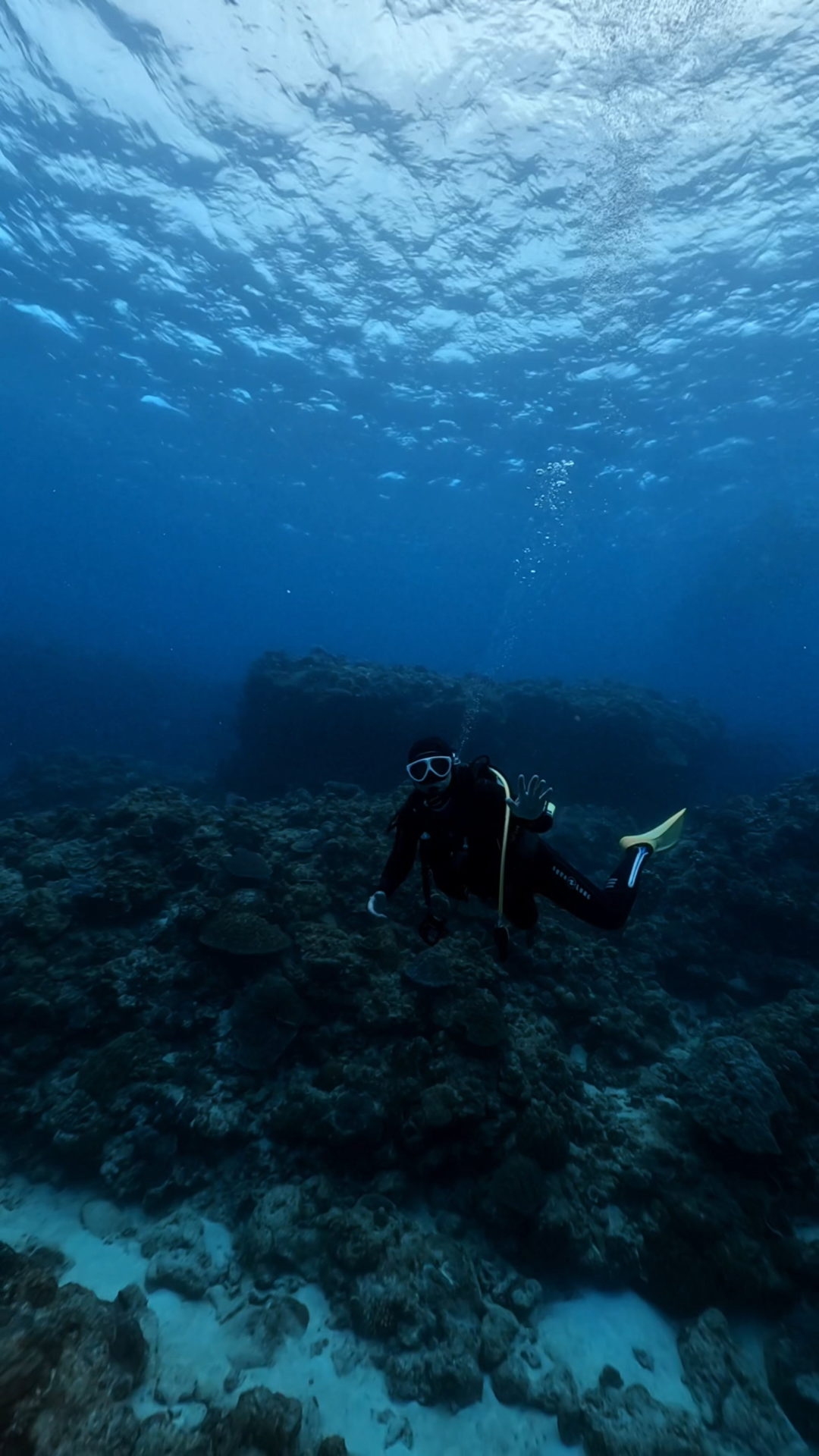 アオウミガメとは待ち合わせしていたかのように会え、一緒に泳ぐこともできました!