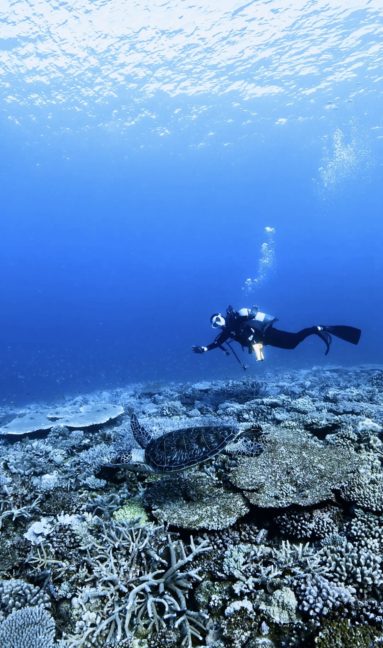 珊瑚の上を泳ぐウミガメも!キレイだねぇ
