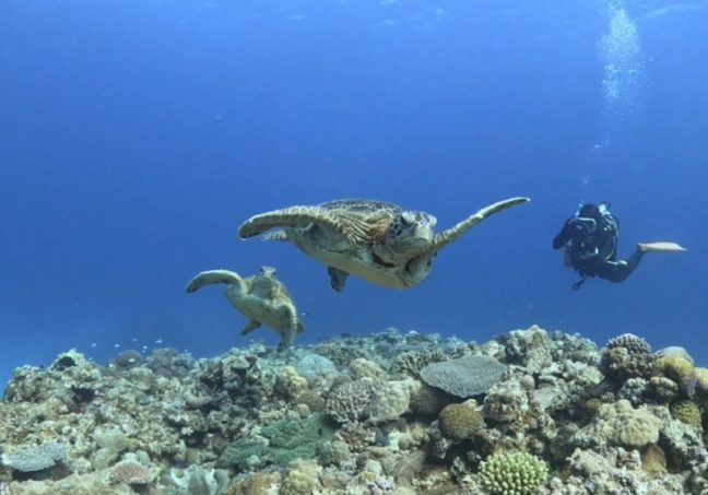 神山では2連ウミガメに遭遇