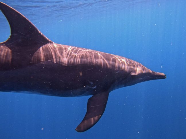 序盤はなかなかクジラに会えず、虚しい時間が続きましたが、その後、なんとドルフィンスイムの始まりはじまり!