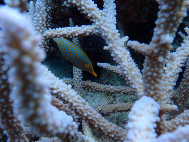 浅瀬で見るテングカワハギは色合いが良すぎて、その目に吸い込まれていきそうです
